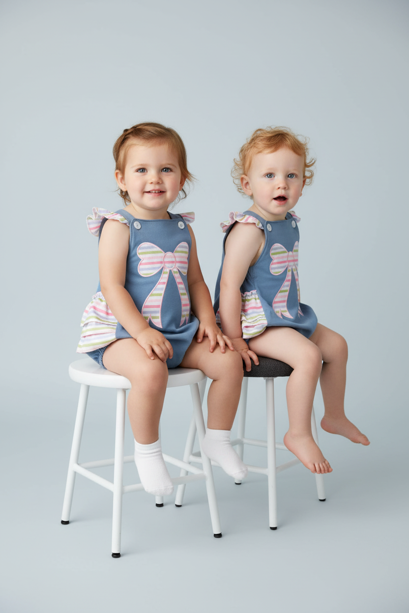 Get ready to charm everyone's socks off with this adorable Blue Bow Applique Girl Bubble! With its playful bow design and sweet blue color, your little fashionista will definitely make a statement. Perfect for any occasion, this bubble is both stylish and comfortable.