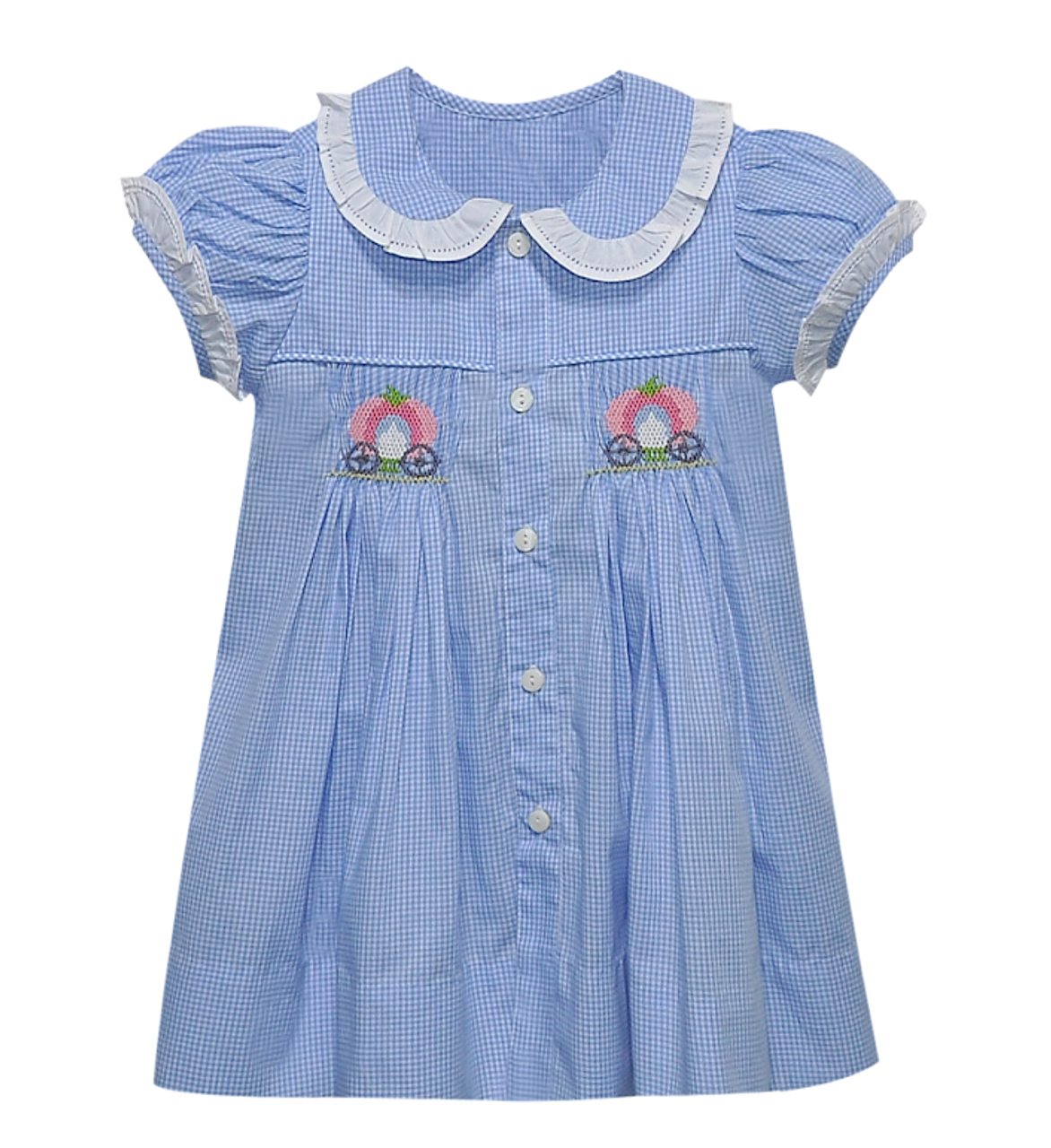 This beautiful blue gingham smocked pumpkin princess is prefect for fall, magical trips or just an outfit for your little princess