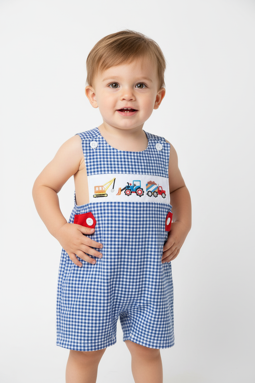 Rev up your little one's style with our blue vehicle embroidery jonjon! Featuring playful car and truck designs, this jonjon is perfect for any adventure-loving child. Crafted with care and attention to detail, this jonjon will keep your child looking stylish and feeling comfortable all day long!