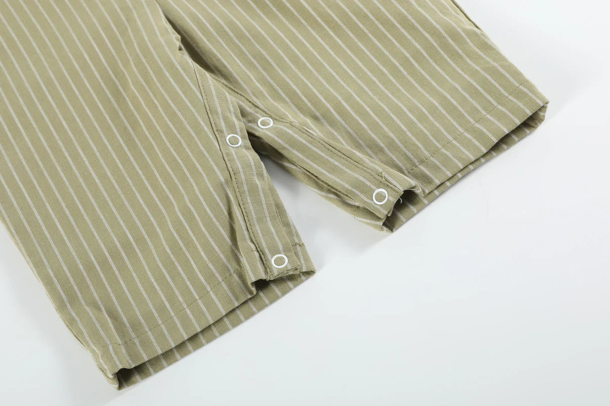 Roar into style with our Green Dinosaur Smocked Overalls for your little adventurer! These playful overalls showcase adorable smocking on the chest and feature lively embroidered dinosaurs. Perfect for your dino-loving kiddo, these overalls add a touch of dino-rrific charm to their wardrobe, making every day an adventure!