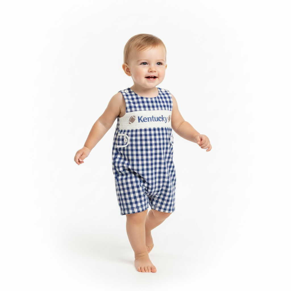 Introducing the Kentucky Wildcats Shortall - a must-have for any young football fan! Expertly crafted with the trademark Kentucky Football Machine Smocked design, this shortall is both stylish and comfortable. Perfect for showing off team spirit and cheering on the Wildcats. Order yours today!