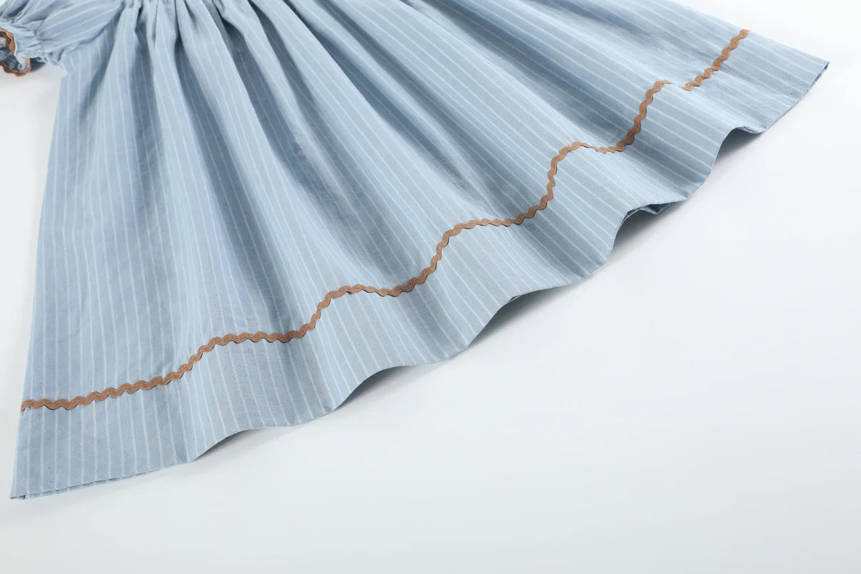 Dress your little one in pure sweetness with our Light Blue Puppy Smocked Bishop Dress! Featuring adorable smocking along the neckline with embroidered dogs, this dress is as cute as can be. Made in a pretty light blue cotton, it's the perfect choice for an effortlessly charming look. From walking the dogs to playdates with friends your sweet girl will be looking picture-perfect.