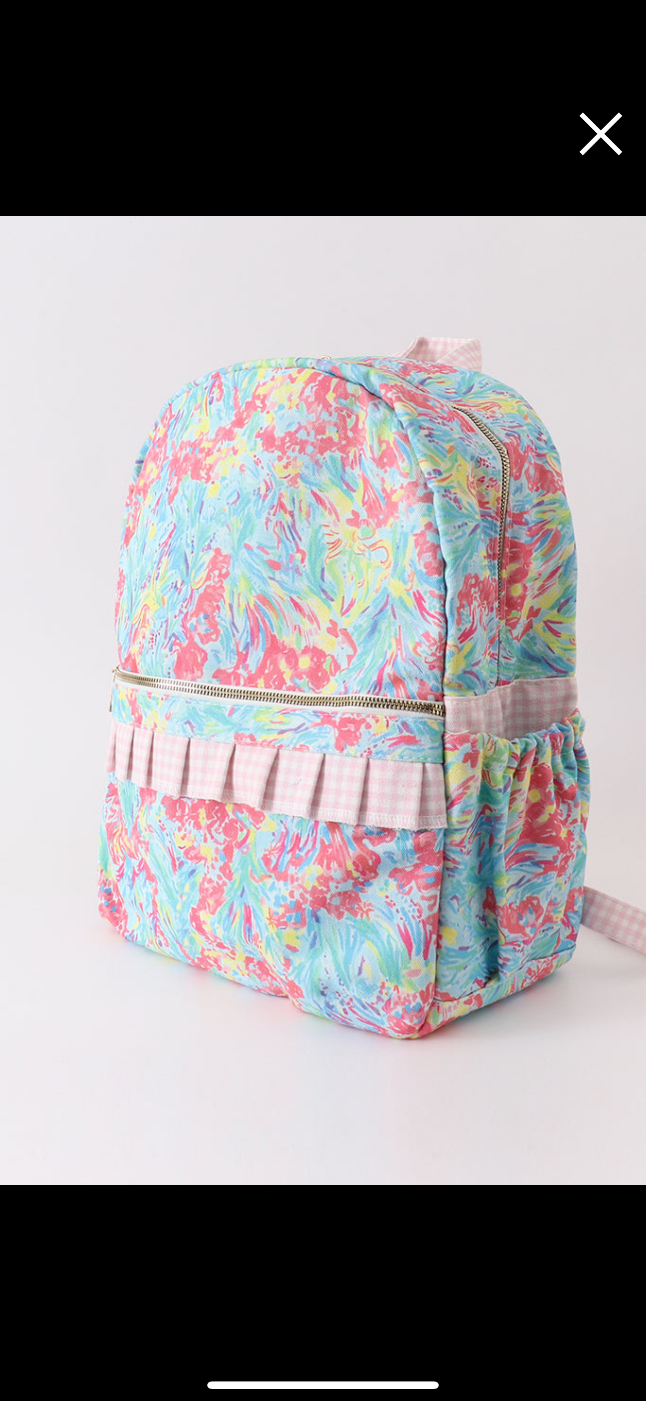 Introducing our Pink Floral Ruffle Backpack - the perfect blend of style and functionality! Complete with delicate floral patterns and playful ruffle details, this backpack is sure to turn heads. With plenty of room for all your essentials, it's the ideal accessory for any adventure!