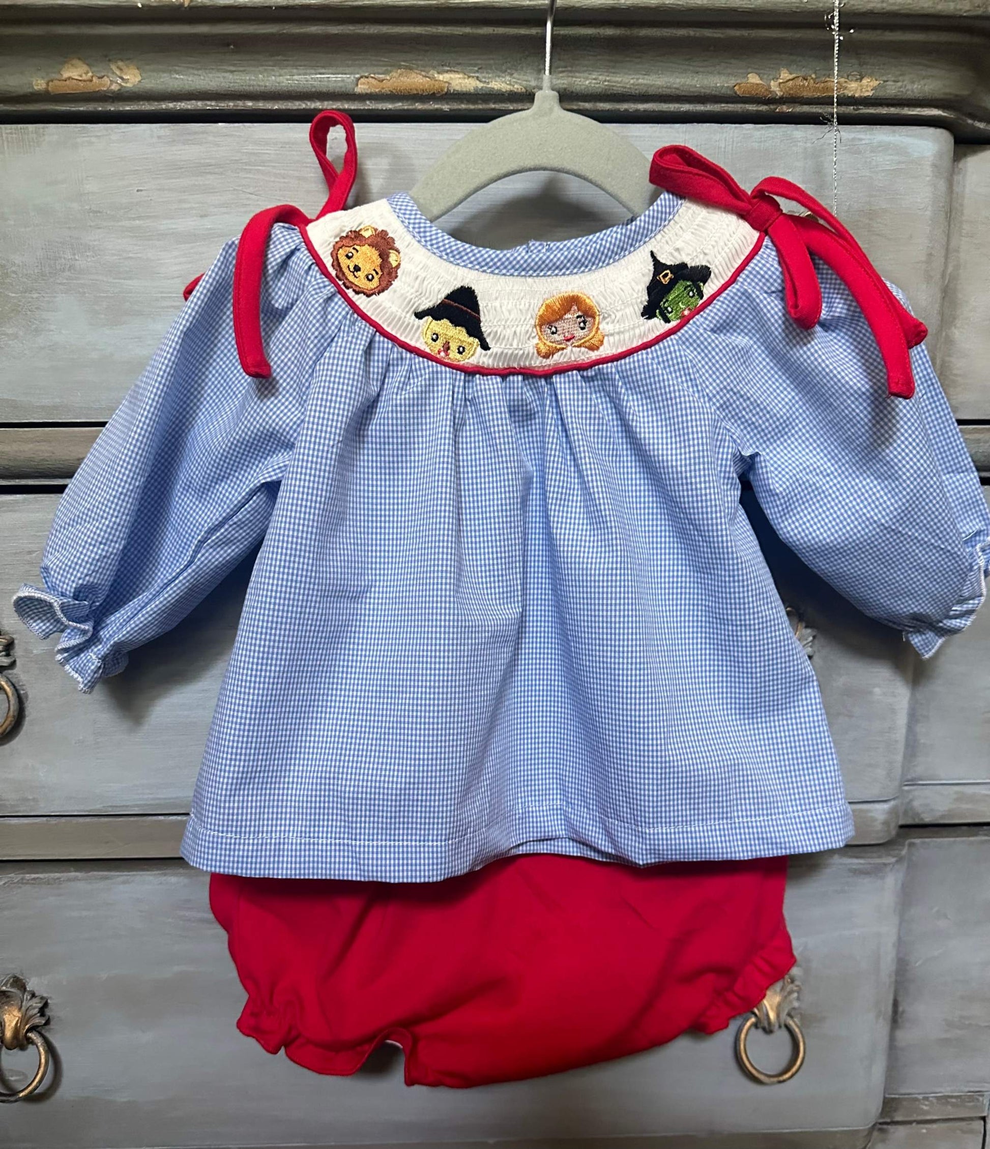 This PREORDER- SMOCKED OZ Bloomer set with Bows is perfect for your little girl. The smocked design adds a touch of elegance, while the bows add a cute and girly touch. Made with high-quality material, this set is comfortable and durable.